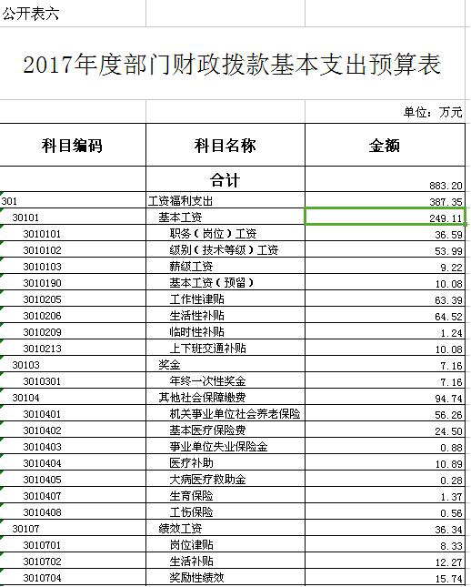 本部門2017年度財政撥款基本支出預算 883.2 萬元,其中: