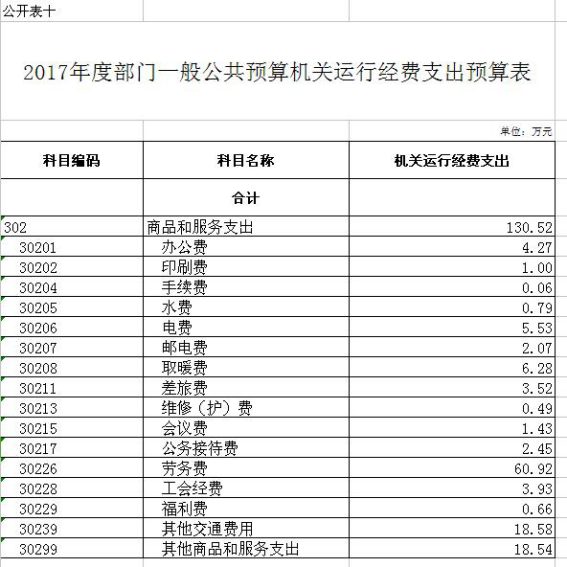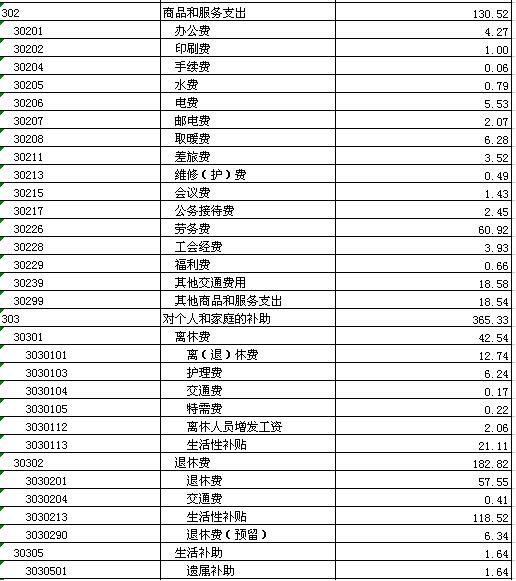 (二)公用經費 130.52 萬元。主要包括:辦公費4.27萬元、印刷費1萬元、手續(xù)費0.06萬元、水費0.79萬元、電費5.53萬元、郵電費2.07萬元、取暖費6.28萬元、差旅費3.52萬元、維修(護)費0.49萬元、會議費1.43萬元、公務接待費2.45萬元、勞務費60.92萬元、工會經費3.93萬元、福利費0.66萬元、其他交通費用18.58萬元、其他商品和服務支出18.54萬元。