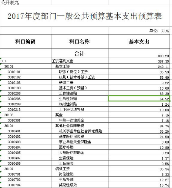 本部門2017年度一般公共預算財政撥款基本支出預算 883.2 萬元,其中: