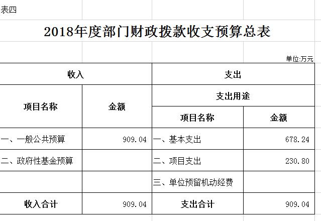 四、財(cái)政撥款收支預(yù)算總表