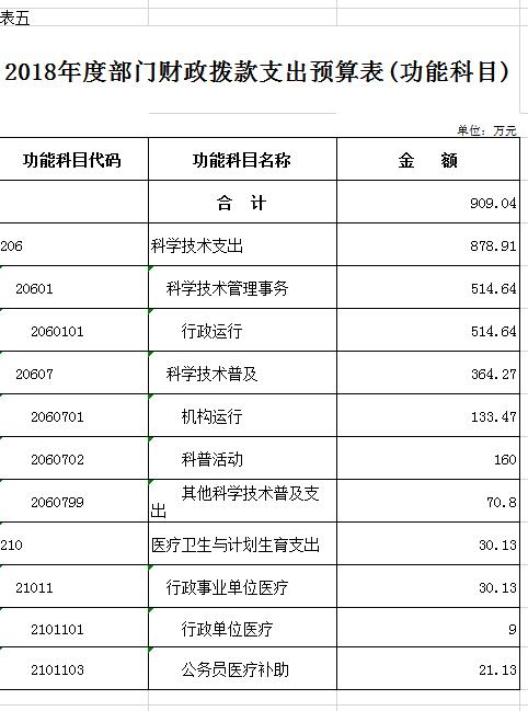 五、財(cái)政撥款支出預(yù)算表(功能科目)