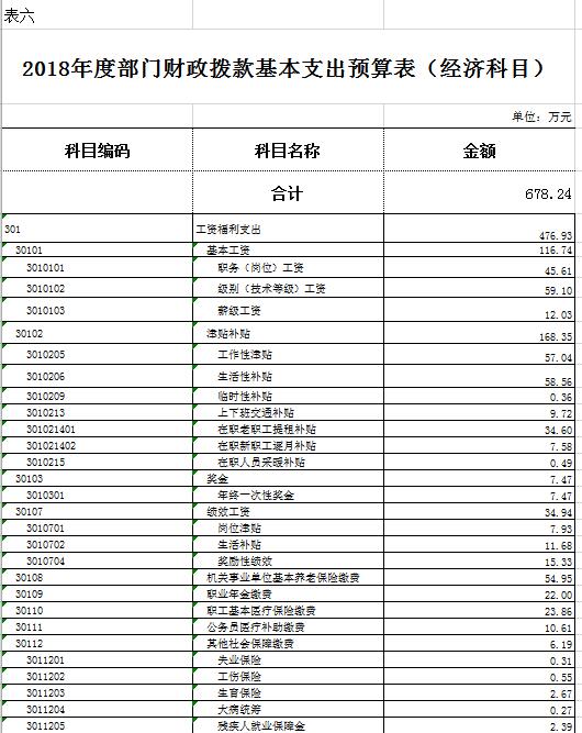六、財(cái)政撥款基本支出預(yù)算表(經(jīng)濟(jì)科目)