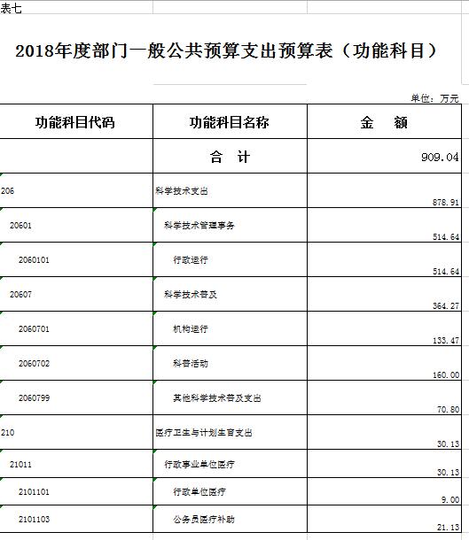 七、一般公共預(yù)算支出預(yù)算表(功能科目)