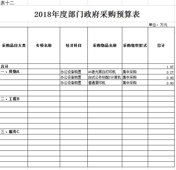 十二、政府采購(gòu)支出預(yù)算表