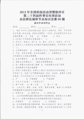 系列活動之三:在科普宣傳周期間,市水利學(xué)會組織水利局機關(guān)全體人員進行了“水法律法規(guī)和節(jié)水知識60題” 競賽活動,通過這次知識競賽,使廣大水利職工加深了水法律法規(guī)的學(xué)習(xí),進一步增強了節(jié)水愛水意識,營造了珍惜水資源、愛護水環(huán)境的氛圍,推進我市資源節(jié)約型、環(huán)境友好型社會建設(shè)。