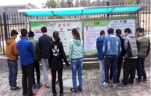 學(xué)生們在瀏覽預(yù)防艾滋病防宣傳欄