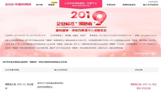 通過(guò)在線(xiàn)申報(bào)方式,經(jīng)形式審查、專(zhuān)家評(píng)審等程序,最終徐州市發(fā)明協(xié)會(huì)聯(lián)合泰州市產(chǎn)品質(zhì)量監(jiān)督檢驗(yàn)院申報(bào)的硬聚氯乙烯(PVC-U)給水管材成功入選了2019年企業(yè)標(biāo)準(zhǔn)“領(lǐng)跑者”重點(diǎn)領(lǐng)域評(píng)估方案和第三方評(píng)估機(jī)構(gòu)。