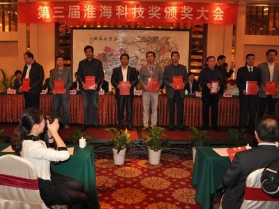 第三屆淮??萍吉?jiǎng)評(píng)選從去年啟動(dòng)以來(lái),共收到申報(bào)成果項(xiàng)目142項(xiàng)、推薦科技人才26人,經(jīng)過(guò)嚴(yán)格的形式審查和初審、復(fù)審、終審,最終評(píng)選出一、二、三等獎(jiǎng)優(yōu)秀成果89項(xiàng)、淮海科技英才獎(jiǎng)2名、淮??破盏浞丢?jiǎng)3名。大會(huì)對(duì)上述獲獎(jiǎng)成果和個(gè)人進(jìn)行了表彰。徐州市科協(xié)還拿出10多萬(wàn)元,對(duì)徐州市的獲獎(jiǎng)成果、個(gè)人和優(yōu)秀組織獎(jiǎng)單位進(jìn)行了獎(jiǎng)勵(lì)。