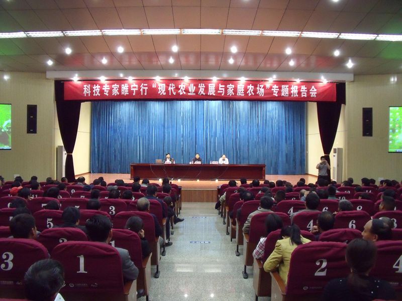4月29日下午,市科協(xié)科技專家睢寧行“現(xiàn)代農(nóng)業(yè)發(fā)展與家庭農(nóng)場”專題報告會在睢寧縣行政中心報告廳舉行,徐州農(nóng)科院孫近友研究員和徐州工程學(xué)院周仕通教授就現(xiàn)代農(nóng)業(yè)與家庭農(nóng)場作專題報告。睢寧縣鎮(zhèn)、園區(qū)分管農(nóng)業(yè)和農(nóng)村經(jīng)濟的負責(zé)人、科協(xié)主席、農(nóng)技中心和農(nóng)經(jīng)中心負責(zé)人,部分種養(yǎng)殖大戶,專業(yè)合作社代表,農(nóng)產(chǎn)品加工企業(yè)代表,縣直涉農(nóng)單位班子成員和部門負責(zé)人共400多人聆聽了報告會。市科協(xié)黨組成員、副調(diào)研員蔣衛(wèi)東主持了報告會。