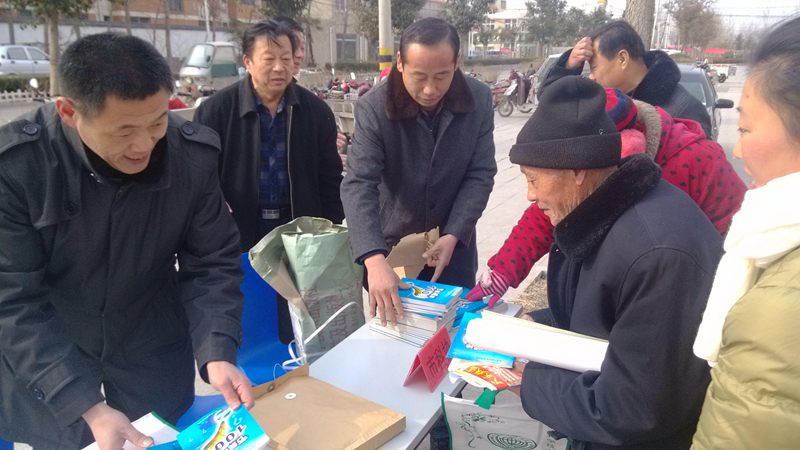 現(xiàn)場向群眾發(fā)放農村科普讀物
