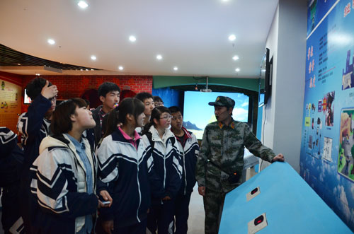 豐縣中學學生聆聽人防館解說員講解防空防災知識