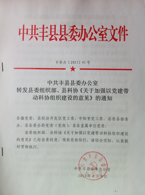 豐委辦印發(fā)的《關(guān)于加強以黨建帶動科協(xié)組織建設(shè)的意見》