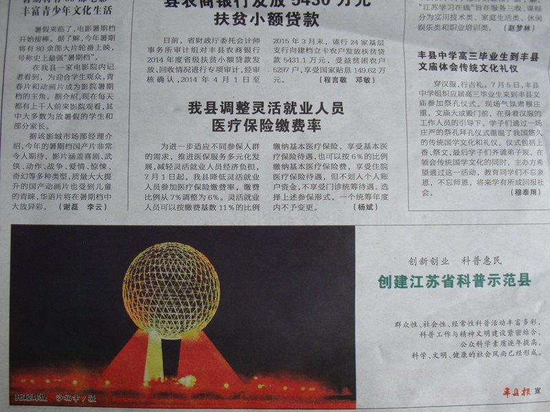 通過在豐縣報(bào)刊登創(chuàng)建口號(hào)和公益宣傳廣告,在豐縣畫報(bào)出刊創(chuàng)建專頁,在電視臺(tái)流動(dòng)播放創(chuàng)建標(biāo)語,各鎮(zhèn)、各單位懸掛創(chuàng)建標(biāo)語等措施,讓廣大群眾了解創(chuàng)建,參與創(chuàng)建,對創(chuàng)建工作出謀化策,為成功創(chuàng)建江蘇省科普示范縣營造濃厚的氛圍。