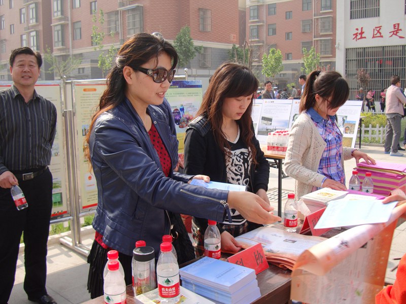 科協(xié)工作人員在棲鳳園社區(qū)現(xiàn)場發(fā)放科普資料