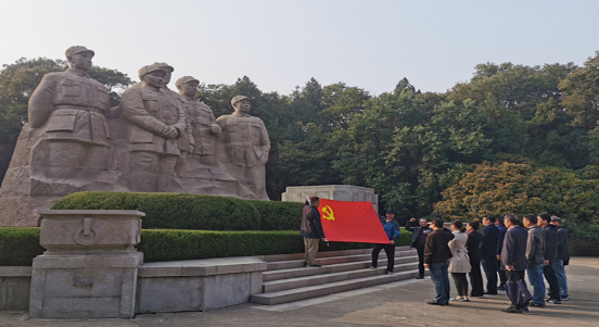 機關人員在淮海戰(zhàn)役烈士紀念塔重溫入黨誓詞