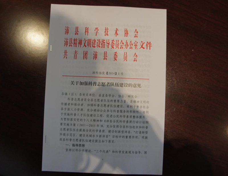 沛縣印發(fā)《關(guān)于加強(qiáng)科普志愿者隊(duì)伍建設(shè)的意見》