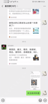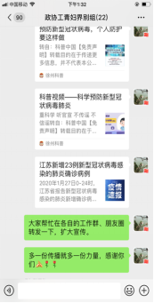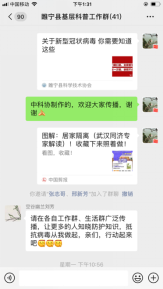 二是借助微信網(wǎng)絡(luò)平臺,第一時間組建基層防控科普群。每日及時推送轉(zhuǎn)載新型肺炎的相關(guān)文章、更新疫情實時動態(tài),鼓勵各校、各鎮(zhèn)基層科普負(fù)責(zé)人進(jìn)行轉(zhuǎn)發(fā)宣傳,拓寬宣傳途徑。