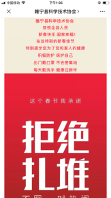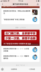 三是通過微信公眾號積極做好新型冠狀病毒感染的肺炎疫情應(yīng)急科普工作,科學(xué)宣傳疫情防護(hù)知識,加強(qiáng)健康教育宣傳普及和輿論引導(dǎo),為公眾解疑釋惑,讓廣大公眾掌握正確的疫情防護(hù)知識,以科學(xué)知識抵制流言傳播,提高公眾自我保護(hù)意識。積極組織基層