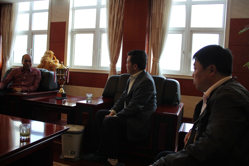 新沂市科協(xié)領(lǐng)導(dǎo)同斯?fàn)柨思瘓F(tuán)董事長(zhǎng)交談