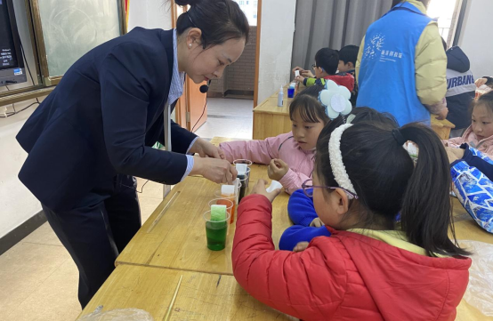 輔導(dǎo)老師正在為學(xué)生演示科學(xué)小實(shí)驗(yàn)