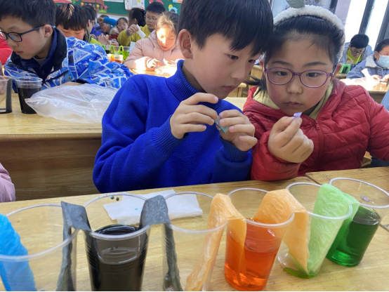 3月2日,在新沂市新安小學(xué)四年級(jí)延時(shí)服務(wù)課堂內(nèi),新沂市科技館的工作人員結(jié)合教學(xué)大綱的內(nèi)容,對(duì)“植物的莖”相關(guān)知識(shí)進(jìn)行了生動(dòng)的講解,并通過有趣的分組實(shí)驗(yàn)讓同學(xué)們直觀地了解“毛細(xì)現(xiàn)象”及“表面張力”。