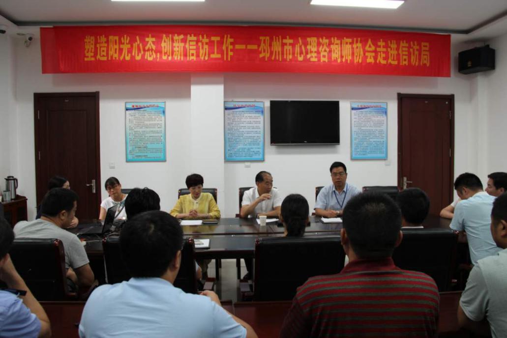 為在信訪工作中加強對信訪者的人文關懷,科學應用心理疏導方法,緩解信訪人心理壓力,排除心理障礙,順暢表達心理訴求,消除信訪人內心不和諧因素,引導信訪人對信訪問題進行客觀分析,依法依規(guī)處理信訪問題,促進社會和諧穩(wěn)定。邳州市心理咨詢師協(xié)會與邳州市信訪局聯(lián)合建立了“信訪心理疏導協(xié)同創(chuàng)新基地”,設立了“信訪心理疏導室”。具有國家二級心理咨詢師資格且有豐富工作經(jīng)驗的4名協(xié)會會員作為信訪心理疏導員。