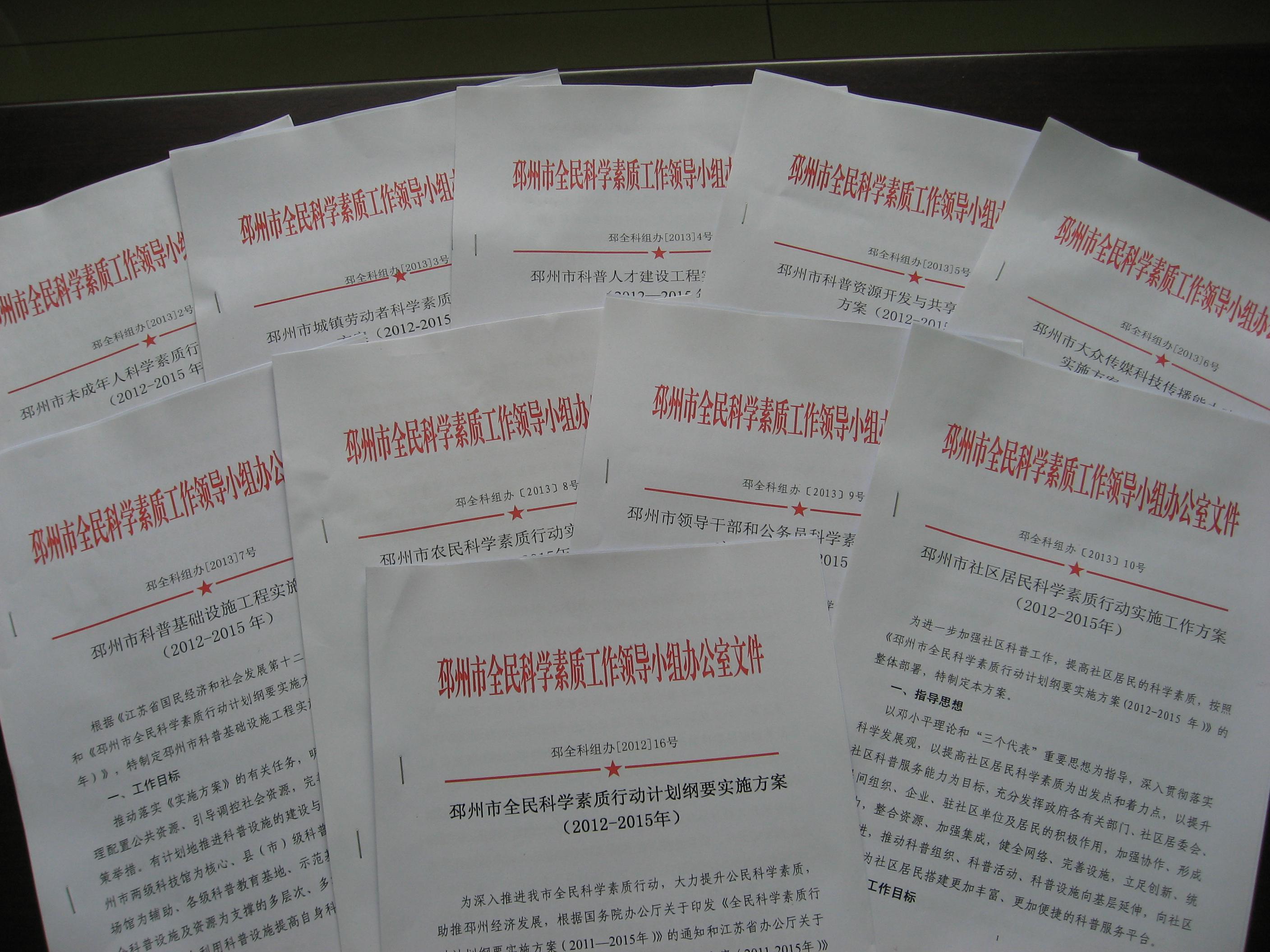 邳州市制訂下發(fā)《邳州市未成年人科學(xué)素質(zhì)行動(dòng)實(shí)施工作方案(2012—2015年)》等9個(gè)專項(xiàng)實(shí)施方案