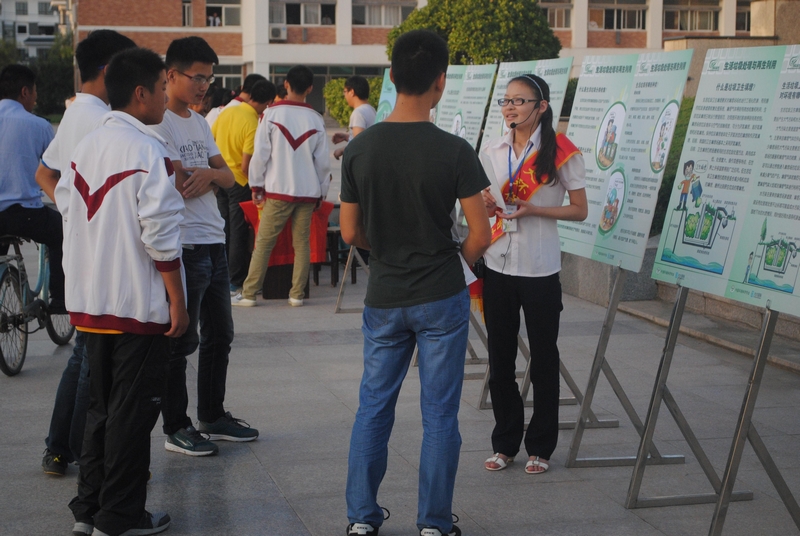科普志愿者向明德實(shí)驗(yàn)學(xué)校的師生介紹環(huán)保知識(shí)