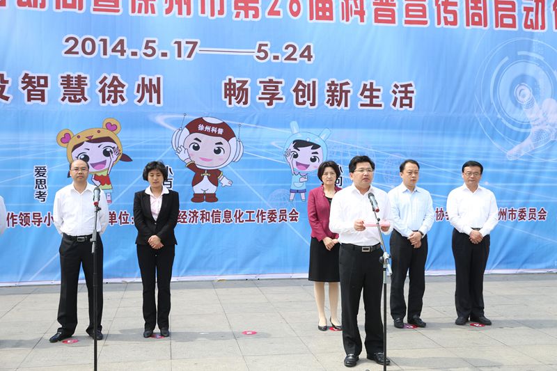 徐州市第26屆科普宣傳周于5月17日至24日舉行。本屆科普宣傳周圍繞“建設(shè)智慧徐州,暢享創(chuàng)新生活”這一主題,將舉辦智慧徐州建設(shè)展示、公眾走進(jìn)科普教育基地等十多項(xiàng)科普活動(dòng)。邳州市市委副書記、市長(zhǎng)陳靜致歡迎辭