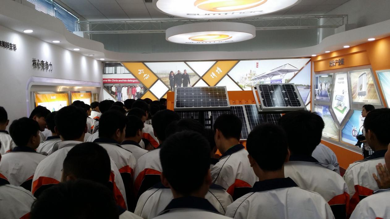 在位于高新區(qū)的江蘇新春興再生資源有限公司展廳,工作人員對企業(yè)進行了介紹;在江蘇省科普教育基地——光大環(huán)保能源(邳州)有限公司,同學(xué)們實地參觀了垃圾焚燒倉的工作情況,并在展廳參觀了垃圾發(fā)電、煙氣處理、滲濾液處理的工藝流程,了解了垃圾發(fā)電知識、垃圾分類處理、再生資源利用知識,增強了節(jié)能減排、低碳環(huán)保意識。天之源新能源科技有限公司的太陽能綜合利用、南方永磁科技有限公司稀土金屬永磁材料、沂州煤焦化、考伯斯煤焦油公司現(xiàn)代化的工業(yè)氛圍和邳州開發(fā)區(qū)企業(yè)服務(wù)中心全方位為企業(yè)服務(wù)意識,都給同學(xué)留下了深刻印象。通過這次活動,同學(xué)們感受到了高科技的魅力,開闊了視野,激發(fā)了學(xué)習(xí)熱情,對于他們樹立就業(yè)意識,培養(yǎng)工匠精神,起到了積極的推動作用。