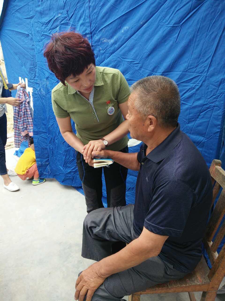 協(xié)會(huì)會(huì)長(zhǎng)對(duì)災(zāi)民進(jìn)行心理危機(jī)干預(yù)援助
