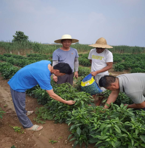 協(xié)會會長、黨支部書記侯啟飛在新莊村蒜套辣椒示范基地給出以下管理建議:一是因辣椒最怕漬澇災害,要溝渠配套、溝溝相通,防止?jié)n澇發(fā)生;二是要做好疫病、白粉病、病毒病、白粉虱、蚜蟲等病蟲害防治,做到以防為主,科學用藥,不得使用禁用農藥,嚴格農藥使用間隔期,保證餐桌上的安全;三是要適時采摘,提高產量。