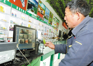 農(nóng)民朋友在農(nóng)業(yè)科技超市通過視頻向農(nóng)技專家咨詢